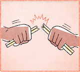 เขาใซ้มือของเขาสองข้างหักตะเกียบ ข้างหนึ่งจับฝั่งหนึ่ง ข้างหนึ่งจับอีกฝั่งหนึ่ง แล้วเขากะหักตะเกียบ