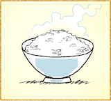Basic vocabulary — Page 01 — Series B, pictures 11-17: bowl, rice, to pour, water, to wash/clean, to stack up, to fall, to break