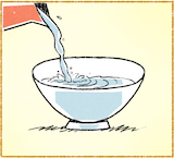 แล้วเขาเทน้ำลงไปในถ้วยเฮ็ดหญัง จักคือกัน เขาอาดสิเอาไปกิน หลืออาดสิเอาไปเฮ็ดสิ่งต่างๆ กะได้ เขากะเลยเทน้ำลงไปในถ้วย