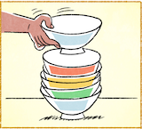 เขาเอาถ้วยมาวางซ้อนกันเฮ็ดหญัง จักคือกัน เขาอาดสิเอามาเก็บให้มันเป็นละเบียบ ให้มันสะอาดหูสะอาดตา หลือว่าให้มันเป็นที่เป็นทางกะได้ หลือว่าเขาอาดสิล้างแล้ว เขากะมาวางซ้อนกันไว้ซื่อๆ