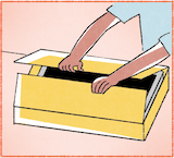 เขาใซ้อี่หยังแกะก่อง เขาใซ้มือของเขาแกะก่อง แล้วกะเปิดก่องออกมา