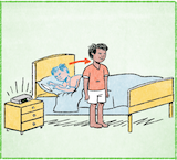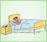 Basic vocabulary — page 12 — Series B, pictures 01-05: alarm clock, to sleep, to get up