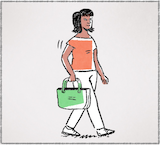 ในมือของเขากำลังถือกะเปาอยู่ กะเปาใบสีเขียว เขาใซ้มือฝั่งขวาของเขาถือกะเปาใบหนึ่ง ใบสีเขียวนั้นหละ
