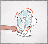 คือฮู้ว่าเขาเปิดพัดลม กะฮู้เพาะว่า เขากำลังเปิดปุ่มเปิดพัดลม แล้วพัดลมมันกำลังหมุนอยู่ พัดลมมันกำลังใซ้งานอยู่ กะเลยฮู้ว่าเขากำลังเปิดพัดลม
