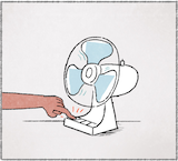 เขากำลังเฮ็ดหญัง เขากำลังเปิดพัดลม