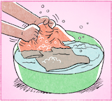เขากำลังเฮ็ดหญัง เขากำลังซักผ้า เขาซักผ้าโตสีแดง เขาซักผ้าโตหนึ่ง