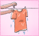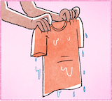 เขากำลังเฮ็ดหญัง เขากำลังซิดผ้า หลือสะหลิดผ้านั้นหละ เพื่อที่สิให้มันหมาดๆ เพื่อที่สิให้เสี้ยโตนี้มันหมาด หลือบ่ให้มีน้ำติดอยู่ในเสี้ยโตนี้