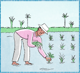 เขากำลังปูกเข้า กำลังดำนา เฮ็ดอยู่นาของเขา