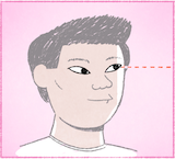 กำลังแนมไปทางซ้ายอยู่ แต่ว่าเขาแนมอี่หยัง เขาใซ้ตาสองข้างของเขานั้นหละ กำลังแนมไปทางซ้ายอยู่