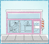แล้วในล้านนั้นแนมเข้าไปหนะสิมีอี่หยังแน่ กะมีคน มีคนสามคน คนหนึ่งกะนั่งอยู่เทิงโต่ะ เพื่อที่ว่าสิให้สั่งตัดผม มาตัดผมให้เจ้าของ คนยืนอยู่หั้นกะเป็นซ่างตัดผม ยืนอยู่หั้นกะเพื่อว่าสิตัดผมให้ลูกค้าเนาะ แล้วกะอีกคนหนึ่งนั่งอยู่เคาเต้อ อาดสิเป็นพะนักงานเก็บเงิน หลือว่าพะนักงานคิดเงินนั้นเอง