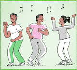 เขากำลังเฮ็ดหญัง กะมีคนสามคนเนาะ พุซายสองคน พุหญิงพุหนึ่ง เขากำลังเต้นกัน