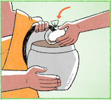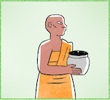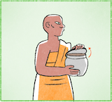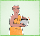 Basic vocabulary — Page 28 — Series B, pictures 11-15: alms bowl, monk, to open, food, to close