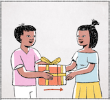 เขากำลังเฮ็ดหญังสองคนนี้ กะมีพุหญิงกับพุซายเนาะ เขากำลังให้ของขวนกัน