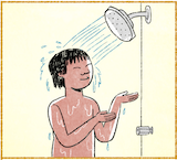 เขาใซ้อี่หยังอาบน้ำ เขากะอาบน้ำ เขากะเปิดฝักบัวหลือว่าเปิดสายยาง เป็นฝักบัว แล้วกะอาบ เปิดน้ำ แล้วมันกะสิไหลออกมาในฝักบัวนั้น แล้วเขากะอาบเนาะ แล้วเขากะถูโต ถูไปมา ให้โตเจ้าของสะอาดเนาะ