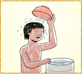 แล้วเขาอาบน้ำอยู่ใส เขากะอาดสิอาบน้ำอยู่ในห้องน้ำ หลือว่าเขาอาดสิอาบน้ำอยู่หม้องโอ่ง หลือว่าอยู่นอกห้องน้ำ หลือว่าอยู่ในห้องน้ำกะได้ เพาะว่าเขามีถังน้ำ แล้วเขากะใซ้ขันตักน้ำอยู่ในถังนั้น แล้วกะเอาน้ำมาอาบโต มาล้างโต ถูโต ให้โตมันสะอาดเนาะ