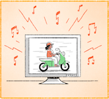Basic vocabulary — Page 32 — Series B, pictures 08-10: motorbike, horn, loud, TV, pick-up truck, drum