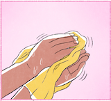 แล้วเขาใซ้อี่หยังเซ็ดมือ เขากะใซ้ผ้านั้นหละ ผ้าสีเหลียง กำลังเซ็ดมือ เซ็ดให้มันแห้ง เซ็ดให้มันสะอาดเนาะ