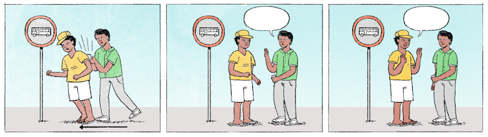 ប៉ះទង្គិច pah tʊəŋkɨc 1. to clash, collide, bump into
