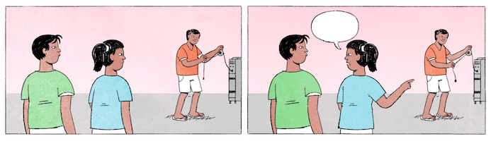ពិសិដ្ឋ៖ អូ! គាត់កំពុងរៀបចំម៉ាស៊ីនបញ្ចាំងស្លាយសម្រាប់ប្រជុំល្ងាចហ្នឹងហ្នឹងណា។