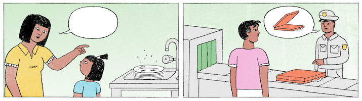 ម្ដាយ៖ អីចឹង ទៅលាងចានចេញតិចទៅ ហើយចាំទៅធ្វើលំហាត់។ លាងចានហើយ បិទភ្លើងផងណា។