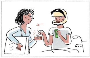 បន្ទាប់មកទៀតរូបភាពទី ១៤ នៅក្នុងរូបភាពទី ១៤ ដោយសារតែនារីម្នាក់នោះ គាត់អត់មានលុយរាយ ដូច្នេះនារីម្នាក់នោះ គាត់ក៏បានឲ្យលុយជាប់ទៅឲ្យបុរស ដែលជាម្ចាស់ម៉ូតូឌុបអញ្ចឹងដោយសារតែតម្លៃលុយនោះ គឺវាច្រើនជាងអ្វីដែលបុរសដែលជាម្ចាស់ម៉ូតូឌុបត្រូវយក អញ្ចឹងគាត់ត្រូវអាប់លុយទៅឲ្យនារីម្នាក់នោះវិញដែលជាក់ស្ដែងយើងឃើញនៅក្នុងរូបភាពទី ១៤ នេះ គឺនៅពេលដែលបុរសដែលជាម្ចាស់ម៉ូតូនោះ គាត់បានទទួលយកលុយពីនារីម្នាក់ ដែលជាអតិថិជនរបស់គាត់ហើយ អញ្ចឹងគាត់ក៏បានយកកាក់ ឬក៏សេន មកអាប់ឲ្យនារីម្នាក់នោះវិញ ដោយសារតែវា នារីម្នាក់នោះ គាត់ឲ្យលុយទៅលើសចំនួន ឬក៏លើសតម្លៃនៃការជិះម៉ូតឌុបដូច្នេះប្រសិនបើយើងអត់លុយរាយ យើងឲ្យលុយជាប់ទៅគេ ហើយលុយរបស់យើងគឺច្រើនជាងតម្លៃនៃអ្វីដែលយើងបានទិញ ឬក៏តម្លៃនៃម៉ូតូឌុប ដែលយើងបាននិយាយគ្នា អញ្ចឹងអ្នកលក់ ឬក៏ម្ចាស់ម៉ូតូ គាត់តែងតែអាប់លុយមកឲ្យយើងវិញ ដោយយើងឃើញនៅក្នុងរូបភាពនេះ គឺបន្ទាប់ពីបុរសដែលជាម្ចាស់ម៉ូតូឌុប គាត់បានទទួលយកលុយពីនារីម្នាក់នោះហើយ គាត់ក៏បានយកលុយមួយចំនួន ឬក៏កាក់មួយចំនួន អាប់ត្រលប់ឲ្យនារីម្នាក់នោះវិញ ដោយយើងឃើញគាត់កាន់លុយនៅដៃឆ្វេង ហើយដៃស្ដាំគាត់ទម្លាក់កាក់ទៅឲ្យនារីម្នាក់នោះអញ្ចឹងនារីម្នាក់នោះ គាត់ក៏បានលើកដៃរបស់គាត់ទទួលយកប្រាក់អាប់មកពីបុរសដែលជាម្ចាស់ម៉ូតូវិញផងដែរ ដោយយើងឃើញគាត់លើកដៃឆ្វេង ដើម្បីទទួលយកប្រាក់អាប់អញ្ចឹងពួកគេទាំងពីរអ្នក ក៏បានឲ្យលុយគ្នាទៅវិញទៅមក ដោយម្ខាងឲ្យលុយ ម្ខាងទៀតទទួលយកប្រាក់អាប់អញ្ចឹងលុយដែលយើងអាប់មកពីលុយធំ លុយជាប់ អញ្ចឹងនៅពេលដែលយើងទិញទំនិញផ្សេងដោយយើងឲ្យលុយធំ ឬក៏លុយជាប់ទៅ ហើយគេមានប្រាក់រាយត្រលប់មកវិញ យើងហៅថាលុយអាប់អញ្ចឹងនារីម្នាក់នេះ នៅក្នុងរូបភាពទី ១៤ គឺគាត់កំពុងតែទទួលលុយអាប់