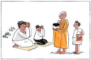 | ដាក់បាត្រ | dak baat | to give food to a monk, put rice or other food in a monk's bowl |