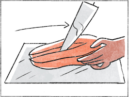 3. to cut along a crease, make an incision