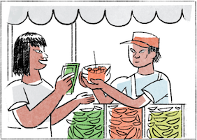 | អ្នកទិញ | neak tɨɲ | customer, purchaser, shopper, buyer |