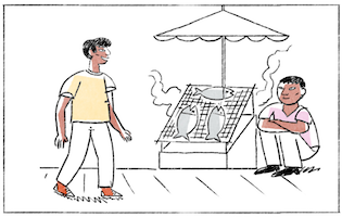 | អាំង | ʔaŋ | 1. to bake, broil, roast, grill, toast 2. to roast by holding over a fire (in a rolled up shape, on a spit), barbecue |