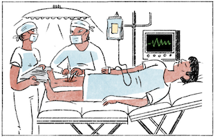 បន្ទាប់មកទៀតរូបភាពទី ១៣ នៅក្នុងរូបភាពទី ១៣ ដោយសារតែបុរសម្នាក់នោះ គាត់មានអាការៈធ្ងន់ធ្ងរនៅនឹងជើងរបស់គាត់ ដោយសារតែគាត់ប៉ះទង្គិចធ្ងន់ធ្ងរ ដោយសារតែជើងរបស់គាត់ត្រូវប៉ះទង្គិចធ្ងន់ធ្ងរ ដូច្នេះក្រុមគ្រូពេទ្យក៏បានព្យួរសេរ៉ូមថ្នាំសន្លប់ឲ្យគាត់អញ្ចឹងបុរសម្នាក់នោះ គាត់ក៏បានសន្លប់នៅពេលដែលគាត់ត្រូវសេរ៉ូមថ្នាំសន្លប់នោះដូច្នេះហើយក្រុមគ្រូពេទ្យក៏ចាប់ផ្ដើមធ្វើការវះកាត់ជើងរបស់គាត់ អញ្ចឹងនៅក្នុងរូបភាពទី ១៣ នេះ យើងឃើញបុរសម្នាក់នោះ គាត់ក៏បានសន្លប់ ក៏ប៉ុន្តែដៃរបស់គាត់នៅតែព្យួរសេរ៉ូមដដែល ព្រោះដើម្បីឲ្យប្រាកដថា ការវះកាត់ជោគជ័យ បុរសម្នាក់នោះនៅមិនទាន់ដឹងខ្លួន ដូច្នេះគឺគេត្រូវដាក់ថ្នាំសេរ៉ូមសន្លប់ឲ្យគាត់នៅពេលដែលគេកំពុងតែវះកាត់ អញ្ចឹងនៅក្នុងរូបភាពនេះ យើងឃើញគ្រូពេទ្យម្នាក់ គាត់កំពុងតែកាន់កាំបិតនិងកន្ត្រៃ ហើយវះកាត់ជើងបុរសម្នាក់នោះកន្លែងដែលមានរបួស អញ្ចឹងមាន ការវះកាត់គឺមានគ្រូពេទ្យចំនួនពីរ ដែលគ្រូពេទ្យមួយទៀតគឺជាជំនួយការ អញ្ចឹងជំនួយការគ្រូពេទ្យតែងតែកាន់ឧបករណ៍នៅក្បែរគ្រូពេទ្យជានិច្ច ដើម្បីយកឧបករណ៍ដែលគ្រូពេទ្យត្រូវការយកមកឲ្យលោកគ្រូពេទ្យធ្វើការវះកាត់ជើង អញ្ចឹងនៅក្នុងនេះ គឺយើងឃើញម៉ូនីទ័រឬក៏អេក្រង់ទូរទស្សន៍នោះ កំពុងតែលោតចង្វាក់បេះដូងរបស់បុរសម្នាក់នោះ ដោយសារតែគេដាក់ថ្នាំសន្លប់ឲ្យគាត់ ដូច្នេះក្រុមគ្រូពេទ្យត្រូវការវាស់ចង្វាក់បេះដូងរបស់បុរសម្នាក់នោះជានិច្ច ដើម្បីឲ្យប្រាកដថាគាត់អាចនៅដឹងខ្លួននៅឡើយ គាត់មិនទាន់បាត់បង់ជីវិត អញ្ចឹងគាត់ធ្វើការវះកាត់ជើងរបស់បុរសម្នាក់នោះ ដើម្បីយកកម្ទេចកម្ទីចេញ ឬក៏ដើម្បីធ្វើការព្យាបាលឆ្អឹងរបស់គាត់ដែលបានបាក់ បន្ទាប់ពីការវះកាត់ហើយ គឺក្រុមគ្រូពេទ្យត្រូវការដេរផ្ចិតមុខរបួសឡើងវិញ អញ្ចឹងដើម្បីកុំឲ្យបុរសម្នាក់នោះមានការឈឺចាប់ នៅពេលដែល ក្នុងការវះកាត់ក៏ដូចជានៅក្នុងពេលដែលដេរមុខរបួសនោះឲ្យជិតវិញ ដូច្នេះបុរសម្នាក់នោះត្រូវបានគេដាក់ថ្នាំសន្លប់នៅក្នុងសេរ៉ូមរបស់គាត់ អញ្ចឹងនៅក្នុងរូបភាពនេះ គឺបុរសម្នាក់នោះ គាត់សន្លប់អត់ដឹងខ្លួនទេ បានន័យថាអត់ដឹងថាក្រុមគ្រូពេទ្យកំពុងតែធ្វើការវះកាត់នោះទេ