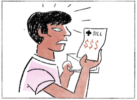 បន្ទាប់មកទៀតរូបភាពទី ១៦ នៅក្នុងរូបភាពទី ១៦ យើងឃើញថា បន្ទាប់ពីបុរសម្នាក់នោះ គាត់ព្យាបាលបានជាសះស្បើយហើយ គាត់ក៏បានយកវិក្កយបត្រពេទ្យដើម្បីមកមើល អញ្ចឹងជាទូទៅ ពេលខ្លះពេទ្យនៅក្នុងប្រទេសកម្ពុជា គឺប្រសិនបើយើងទៅគេងនៅក្នុងពេទ្យធំគឺមានតម្លៃថ្លៃ ចំណែកឯពេទ្យតូចគឺមានតម្លៃថោក ហើយសម្រាប់ការព្យាបាលគឺពឹងផ្អែកទៅលើការព្យាបាល អញ្ចឹងប្រសិនបើយើងគេងនៅក្នុងពេទ្យយូរ គឺការព្យាបាលគឺអស់ថ្លៃ ប៉ុន្តែប្រសិនបើយើងគេងពេទ្យត្រឹមតែមួយថ្ងៃឬក៏ពីរថ្ងៃ យើងអាចចំណាយអស់ត្រឹមតែពី ១០០ ដុល្លារទៅ ៣០០ ដុល្លារតែប៉ុណ្ណោះ ក៏ប៉ុន្តែប្រសិនបើយើងគេងពេទ្យរយៈពេលយូរ យើងអាចចំណាយអស់ពី ៥០០ ទៅដល់ ១០០០ ដុល្លារ ឬក៏អាចលើសនេះ ព្រោះដោយសារតែតម្លៃទៅតាមពេទ្យ ពេទ្យធំនិងពេទ្យតូច អញ្ចឹងប៉ុន្តែពេលខ្លះគឺយើងអាចប្រើប្រាស់ធានារ៉ាប់រង សេវាធានារ៉ាប់រងរបស់ក្រុមហ៊ុនមួយចំនួន អញ្ចឹងប៉ុន្តែភាគច្រើននៅក្នុងប្រទេសកម្ពុជា ប្រជាជនកម្ពុជាគាត់អត់សូវប្រើប្រាស់សេវាធានារ៉ាប់រងនោះទេ អញ្ចឹងនៅពេលដែលគាត់មានជំងឺ ឬក៏នៅពេលដែលគាត់មានគ្រោះថ្នាក់ ហើយទៅព្យាបាលនៅមន្ទីរពេទ្យ គឺគាត់ចេញលុយខ្លួនឯង បានន័យថាគាត់ចំណាយលុយផ្ទាល់ខ្លួន ប៉ុន្តែសម្រាប់អ្នកដែលគាត់ប្រើប្រាស់សេវាធានារ៉ាប់រង គឺគាត់អត់ចាំបាច់ចេញលុយ ឬក៏ចំណាយលុយផ្ទាល់ខ្លួននោះទេ គឺក្រុមហ៊ុនធានារ៉ាប់រងនឹងទទួលរ៉ាប់រងនូវការចំណាយព្យាបាលរបស់គាត់ទាំងស្រុង ដោយគាត់គ្រាន់តែបង់សេវាប្រចាំឆ្នាំទៅឲ្យក្រុមហ៊ុនធានារ៉ាប់រងតែប៉ុណ្ណោះ ហើយក្រុមហ៊ុនធានារ៉ាប់រងគឺយើងអាចធានារ៉ាប់រងនៅពេលដែលយើងមានគ្រោះថ្នាក់ ឬក៏នៅពេលដែលយើងមានជំងឺបាន ដោយការធានារ៉ាប់រងនោះ ពេលខ្លះ ក្រុមហ៊ុនខ្លះ គឺគាត់ធានារ៉ាប់រង ២៤ ម៉ោងគ្រប់ទីកន្លែងទាំងអស់ អញ្ចឹងនៅពេលដែលយើងមានជំងឺ ឬក៏នៅពេលដែលយើងគ្រោះថ្នាក់ យើងគ្រាន់តែទៅមន្ទីរពេទ្យ នោះក្រុមហ៊ុនធានារ៉ាប់រងនឹងចេញថ្លៃសេវាថ្នាំពេទ្យ ហើយនិងថ្លៃព្យាបាលឲ្យយើងទាំងអស់ ក៏ប៉ុន្តែប្រសិនបើយើងអត់មានធានារ៉ាប់រងទេ គឺយើងត្រូវចំណាយប្រាក់ផ្ទាល់ខ្លួន ដើម្បីព្យាបាលជំងឺរបស់យើង ដែលជាក់ស្ដែងបុរសម្នាក់នេះ ប្រហែលជាគាត់អត់មានសេវាធានារ៉ាប់រងទេ បានន័យថាគាត់អត់បានទិញសេវាធានារ៉ាប់រងទេ ដូច្នេះនៅពេលដែលគាត់កាន់វិក្កយបត្រពេទ្យមក គឺគាត់ភ្ញាក់ផ្អើលយ៉ាងខ្លាំង ប្រហែលជាអស់ច្រើន បានន័យថាដោយសារតែគាត់បាក់ជើងនិងនៅពេទ្យយូរ ដូច្នេះការចំណាយរបស់គាត់គឺអស់ច្រើន អញ្ចឹងហើយទើបគាត់មើលទៅក្នុងវិក្កយបត្រពេទ្យបណ្ដើរ គាត់មានអាការៈភ្ញាក់ផ្អើលបណ្ដើរ ដោយសារតែឃើញតម្លៃថ្លៃពេក ដោយសារតែឃើញវិក្កយបត្រនោះគឺមានតម្លៃថ្លៃពេក