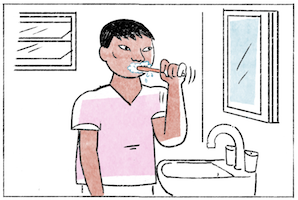 | ដុសធ្មេញ | doh tmɨɲ | to brush the teeth |