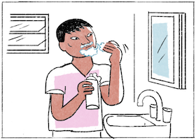| ដុសធ្មេញ | doh tmɨɲ | to brush the teeth |