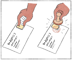 | សំបុត្រ | sɑmbot | 1. ticket 2. letter, message, note 3. envelope in which money is put as a wedding gift Notes: also written សំបុដ |