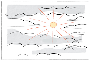 បន្ទាប់មកទៀតរូបភាពទី ១៤ រូបភាពទី ១៤ យើងឃើញថា បន្ទាប់ពីមេឃភ្លៀងរួចហើយ បន្ទាប់ពីមេឃភ្លៀង មេឃក៏ចាប់ផ្ដើមស្រឡះអញ្ចឹងយើងឃើញពពកខ្មៅទាំងអស់ កំពុងតែរសាត់ចេញពីព្រះអាទិត្យអញ្ចឹងយើងឃើញព្រះអាទិត្យកំពុងតែបញ្ចេញពន្លឺ ឬក៏បញ្ចេញរស្មីមកវិញ ដូច្នេះបានន័យថាមេឃភ្លៀង លែង មេឃលែងភ្លៀងហើយ អញ្ចឹងយើងឃើញមេឃចាប់ផ្ដើមស្រឡះបន្តិចម្ដងៗ ហើយពពកខ្មៅក៏ចាប់ផ្ដើមរសាត់ចេញ ពពកក៏ចាប់ផ្ដើមរសាត់ចូលមកវិញអញ្ចឹងបន្ទាប់ពីភ្លៀង មេឃស្រឡះ ដែលយើងឃើញនៅក្នុងសុភាសិតខ្មែរក៏បាននិយាយថា ក្រោយភ្លៀង មេឃស្រឡះអញ្ចឹងអត់មានពពកខ្មៅទៀតទេ នៅពេលដែលអត់មានពពកខ្មៅ គឺយើងបានន័យថា មេឃក៏លែងភ្លៀងដែរដូច្នេះព្រះអាទិត្យក៏ចាប់ផ្ដើមបញ្ចេញពន្លឺមកលើផែនដីម្ដងទៀត ដោយពុំមានមេឃភ្លៀងនោះទេ ដោយបានន័យថាភ្លៀងរាំងហើយ
