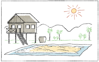 | រានហាល | rien haal | 1. porch, veranda, balcony, sun deck 2. drying platform |