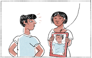 បន្ទាប់មកទៀតរូបភាពទីនៅក្នុងរូបភាពទីយើងឃើញថា បន្ទាប់ពីគាត់បានឆ្លុះកញ្ចក់ បុរសម្នាក់នោះ គាត់ក៏បានប្រែប្រួលទឹកមុខ អញ្ចឹងបានន័យថាគាត់អត់សូវពេញចិត្តនឹងអាវនោះទេ ដោយសារតែអាចអាវនោះវាតូចពេក ឬក៏ធំពេក មិនល្មមនឹងខ្លួនគាត់ អញ្ចឹងរូបភាពនេះយើងឃើញ បុរសនោះ គាត់ប្រែប្រួលទឹកមុខ ដោយគាត់មិនសូវជាសប្បាយចិត្តនឹងអាវនោះ ដោយគាត់ឆ្លុះមើលកញ្ចក់ ដោយភ្នែករបស់គាត់សម្លឹងទៅកញ្ចក់ ហើយដៃរបស់គាត់ចាប់ទាញសាច់អាវមក អញ្ចឹងគាត់កំពុងតែចាប់ទាញសាច់អាវ ដែលយើងឃើញរូបភាពនៅក្នុងកញ្ចក់នោះ គឺគាត់កំពុងតែទាញអាវ បានន័យថាអាវនោះប្រហែលជាធំជាងខ្លួនគាត់ពេក គឺមិនល្មមនោះទេ គឺបានន័យថាអាវនោះរលុង ដូច្នេះគាត់អត់ពេញចិត្តទេ ដោយសារតែការទិញអាវគឺយើងអត់ពាក់អាវធំពេកទេ ប្រសិនបើពាក់អាវធំពេក នោះវាធ្វើឲ្យយើងអត់ស្អាតនោះទេអញ្ចឹងយើងមើលទៅអត់ស្អាត ដូច្នេះយើងអត់ពាក់អាវធំជាងខ្លួនទេ គឺយើងពាក់អាវដែលល្មមនឹងខ្លួនយើង ដោយសារតែនៅពេលដែលយើងពាក់អាវដែលល្មមនឹងខ្លួនយើង គឺមើលទៅយើងឃើញស្អាត ហើយសង្ហាជាងមុន ដូច្នេះប្រសិនបើយើងពាក់អាវធំពេកគឺមើលទៅយើងឃើញចាស់ ហើយអត់សង្ហាទេ អញ្ចឹងរូបភាពនេះ គឺបុរសម្នាក់នោះ គាត់កំពុងតែឆ្លុះកញ្ចក់ ដោយអ្នកលក់ គាត់កំពុងតែកាន់កញ្ចក់ដើម្បីឲ្យបុរសម្នាក់នោះឆ្លុះ ហើយយើងឃើញកញ្ចក់របស់អ្នកលក់ គឺមានចងខ្សែផងដែរ អញ្ចឹងដើម្បីកុំឲ្យបាត់កញ្ចក់អ្នកលក់ក៏បានចងខ្សែដើម្បីព្យួរ អញ្ចឹងអ្នកលក់ព្យួរកញ្ចក់នោះដោយចងខ្សែ ហើយនៅពេលណាដែលអ្នកលក់ចង់ឆ្លុះកញ្ចក់ អ្នកលក់នោះ អតិថិជនចង់ឆ្លុះកញ្ចក់ អ្នកលក់គាត់គ្រាន់តែយកកញ្ចក់នោះមកកាន់ គឺ ហើយឲ្យអ្នកទិញគាត់ឆ្លុះគឺជាការស្រេច